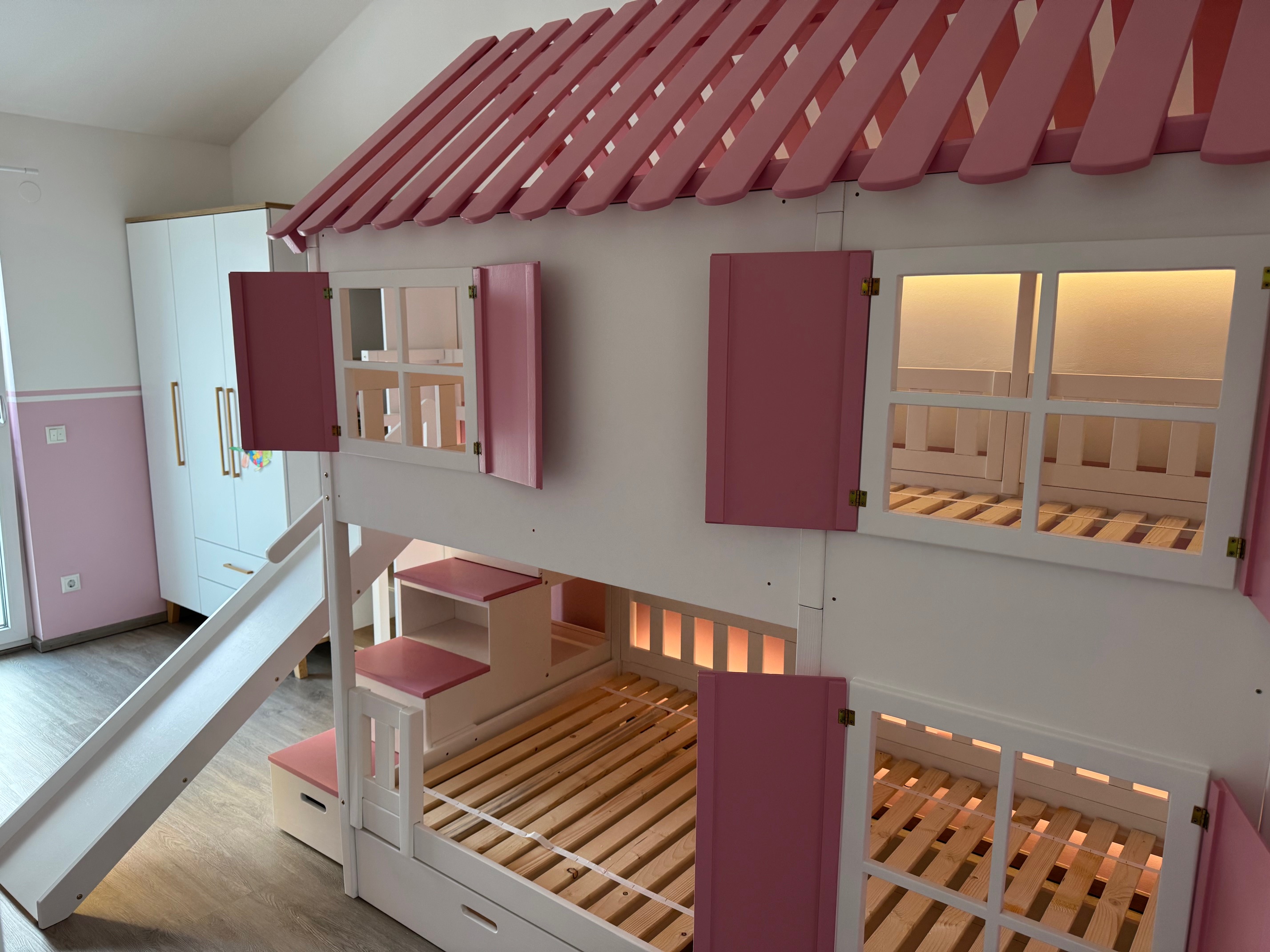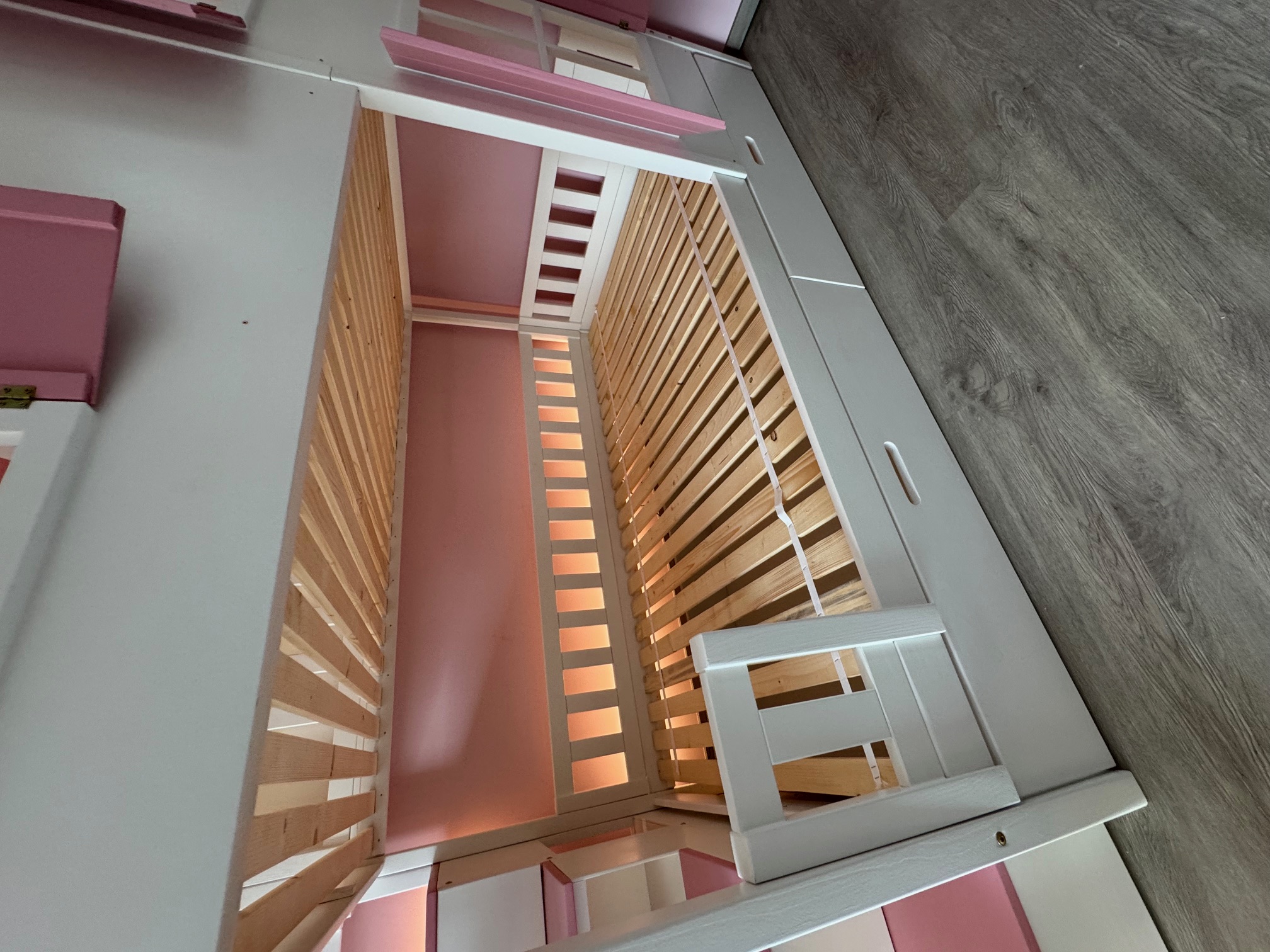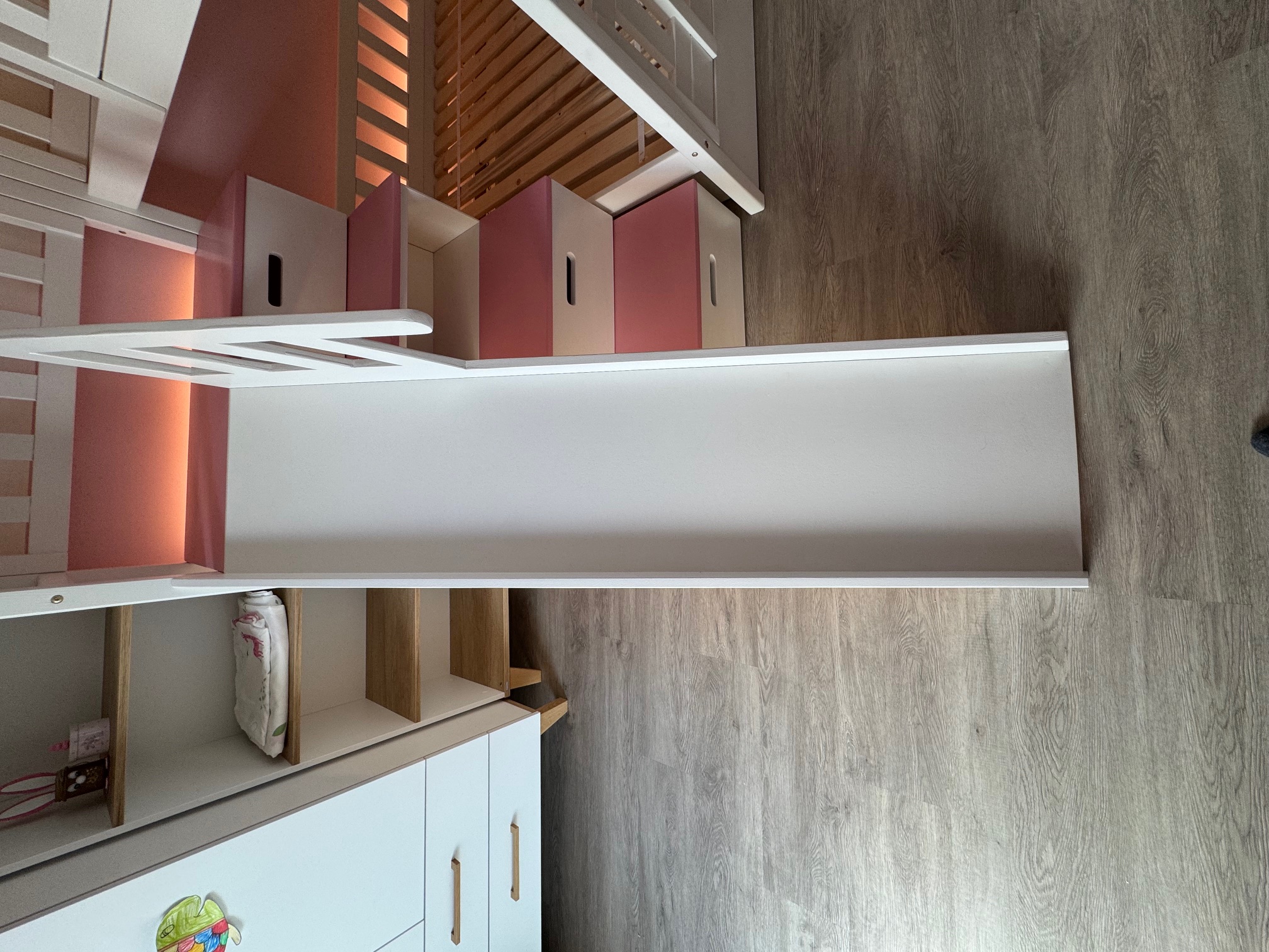 Dit stapelbed 120x200 met trap en glijbaan is meer dan een slaapplek – het is een plek waar kinderen elke dag nieuwe avonturen beleven. De combinatie van een ruime slaapplaats, speelse glijbaan en sfeervolle LED verlichting maakt dit bed tot het middelpunt van de kinderkamer.