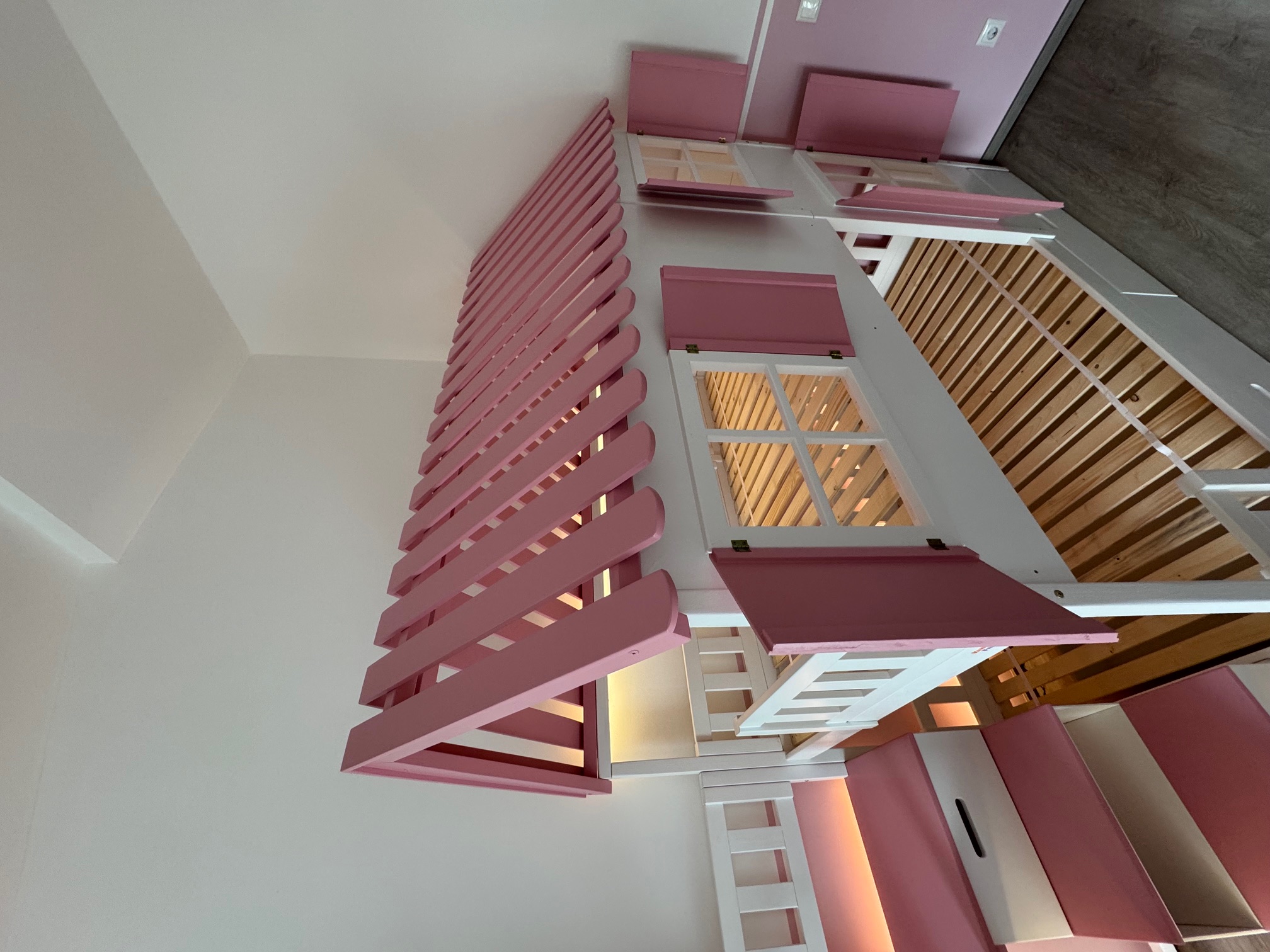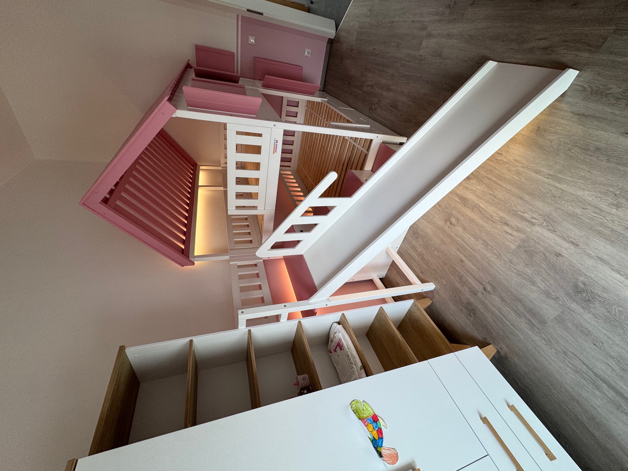 De glijbaan maakt dit stapelbed met trap en glijbaan uniek.