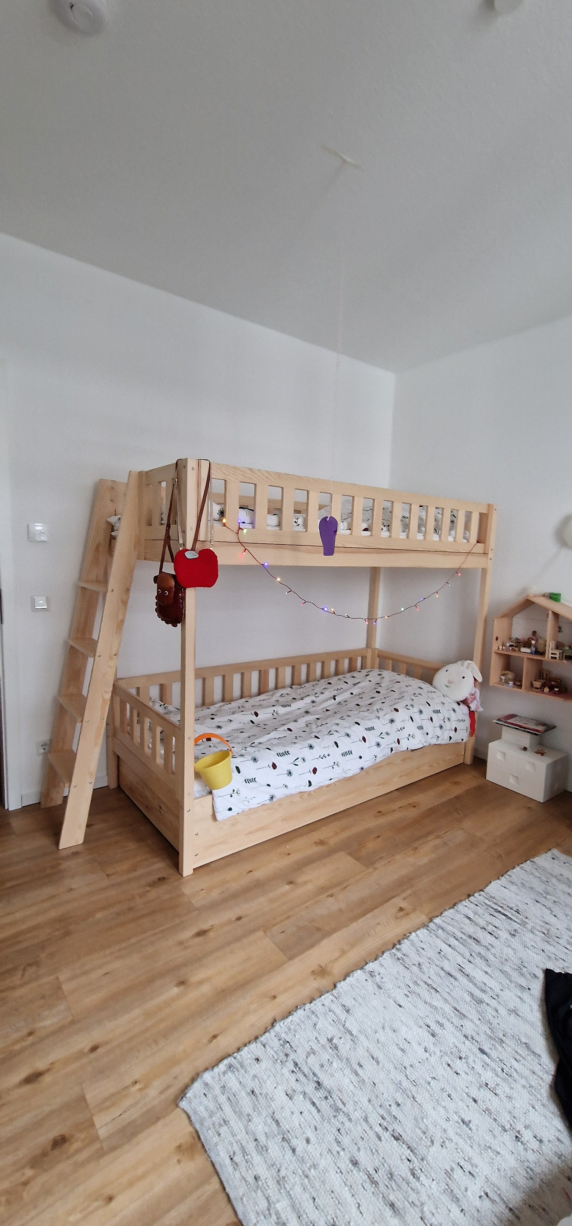 Het kinderbed met ladder en extra bed is ontworpen voor dagelijks gebruik en biedt een stabiele en comfortabele slaapomgeving.