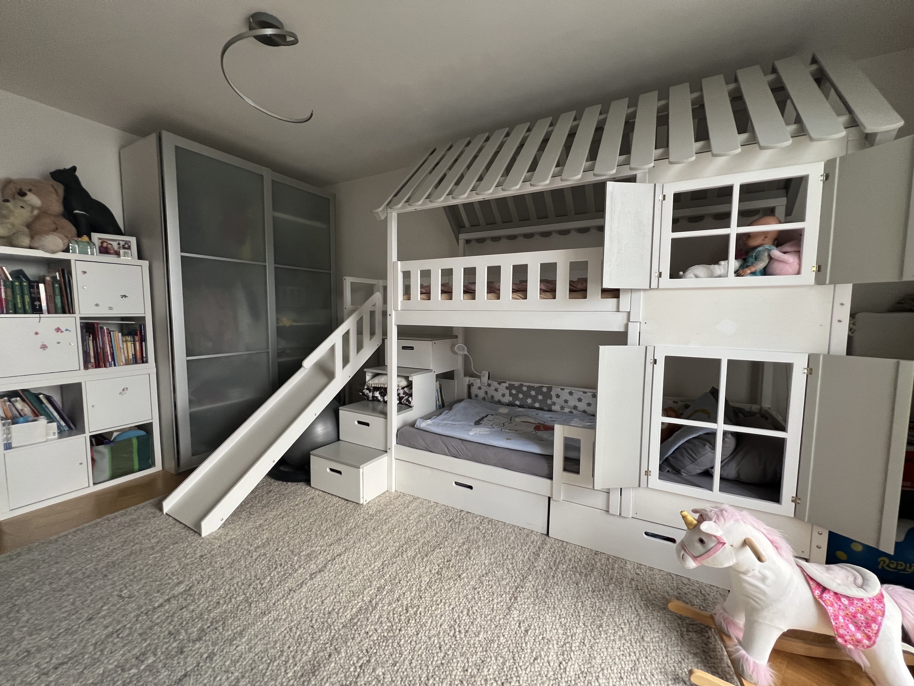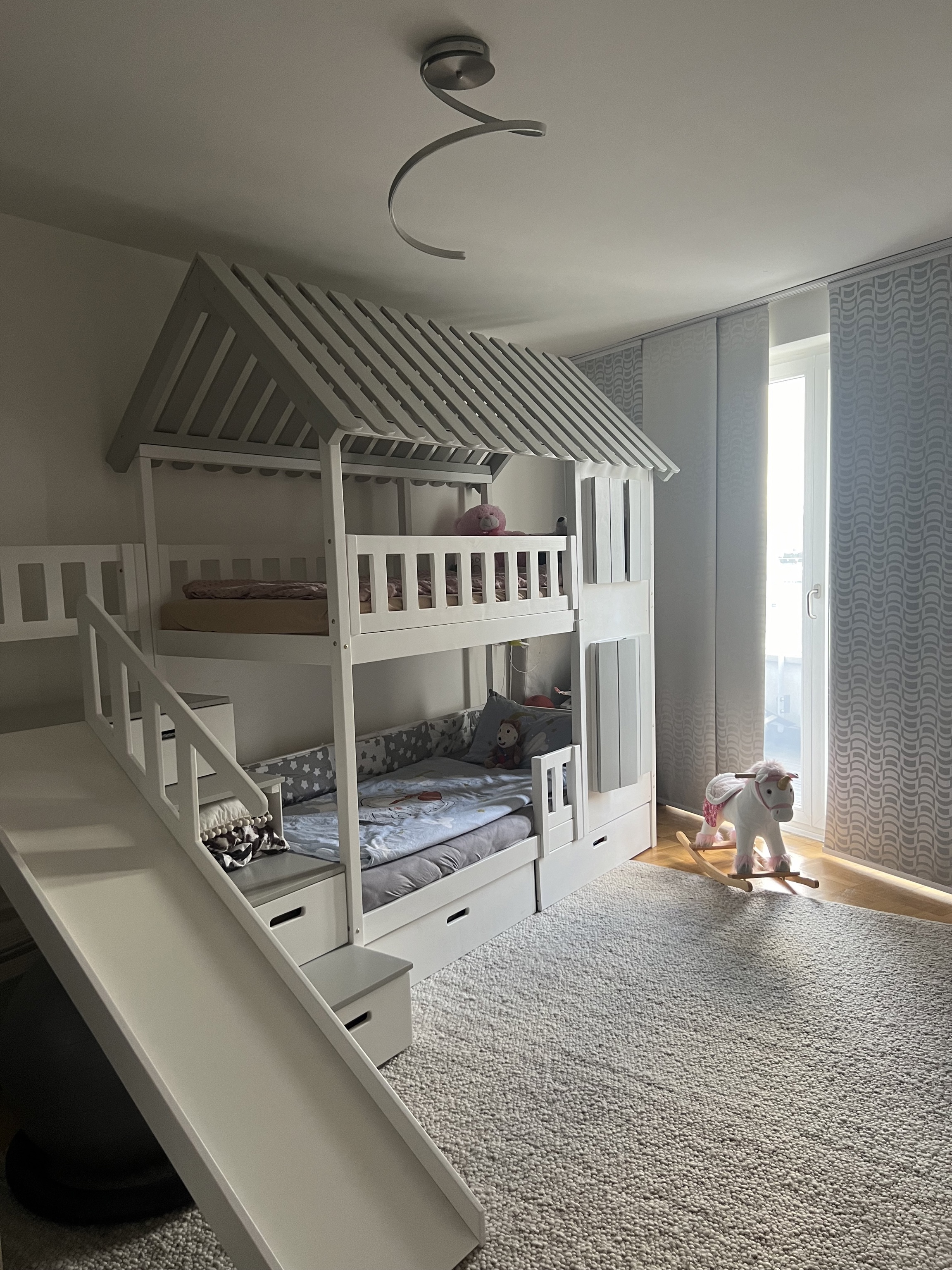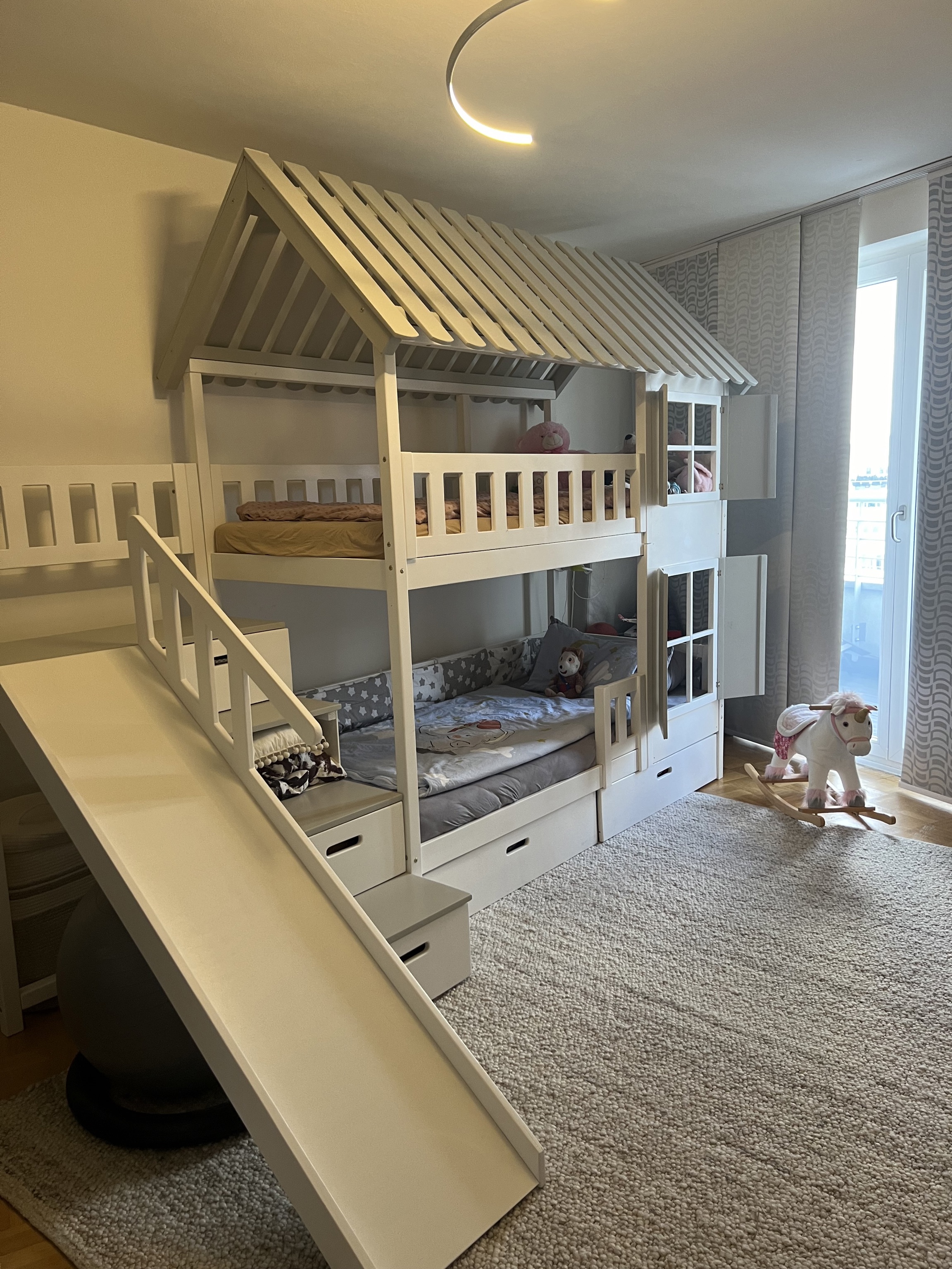 Een speelbed met glijbaan stimuleert creativiteit en beweging. Het nodigt kinderen uit om hun kamer actief te gebruiken en maakt van een gewone ruimte een plek vol energie.