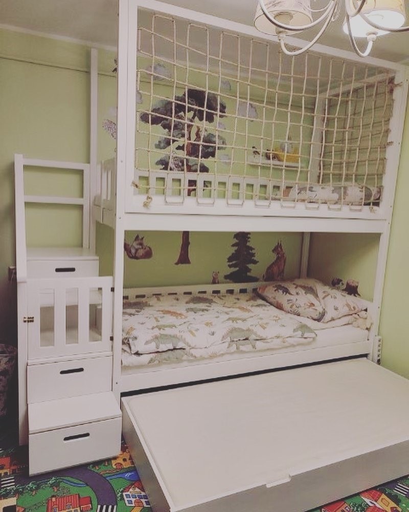 Het veiligheidsnet voorkomt dat kinderen uit het bed rollen tijdens het slapen. Dit zorgt voor een gerust gevoel bij ouders en een veilige slaapomgeving voor het kind. Het net is stevig geïntegreerd in het ontwerp en sluit perfect aan op de structuur van de hoogslaper.