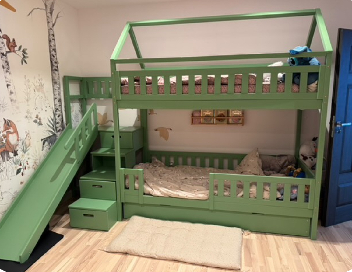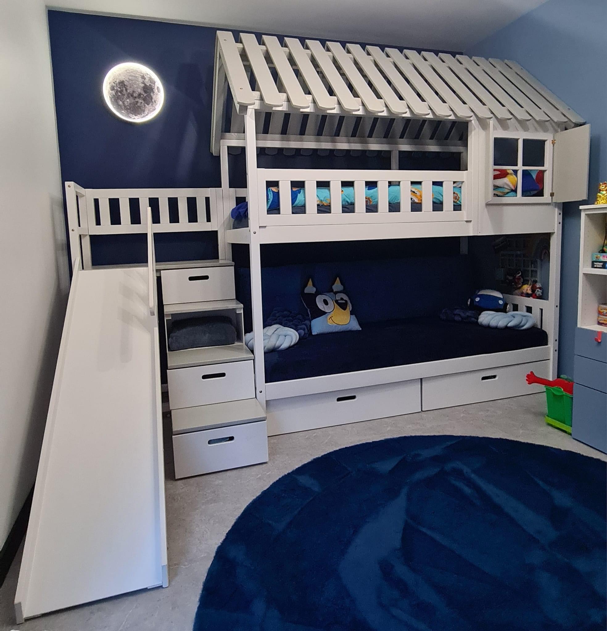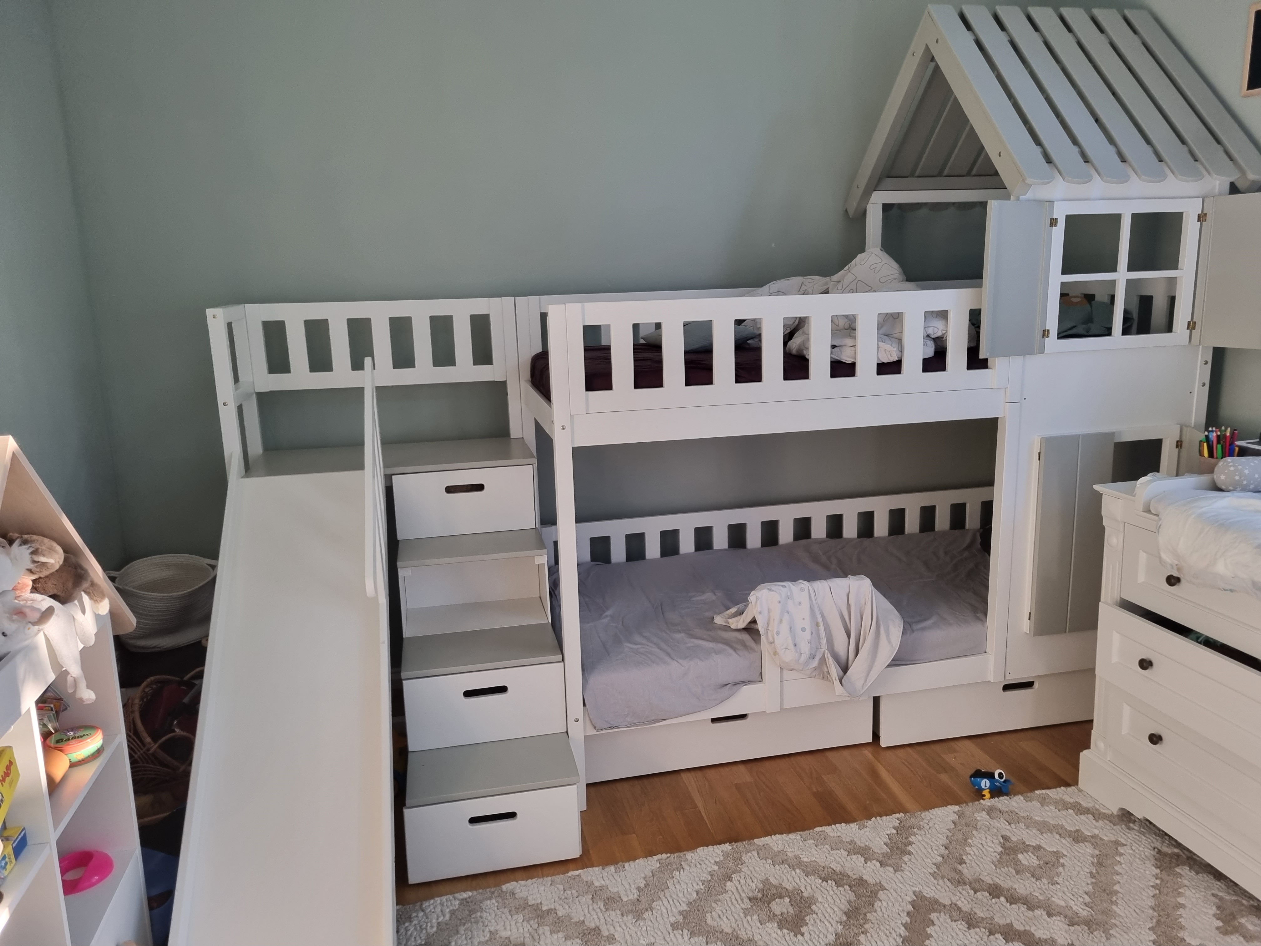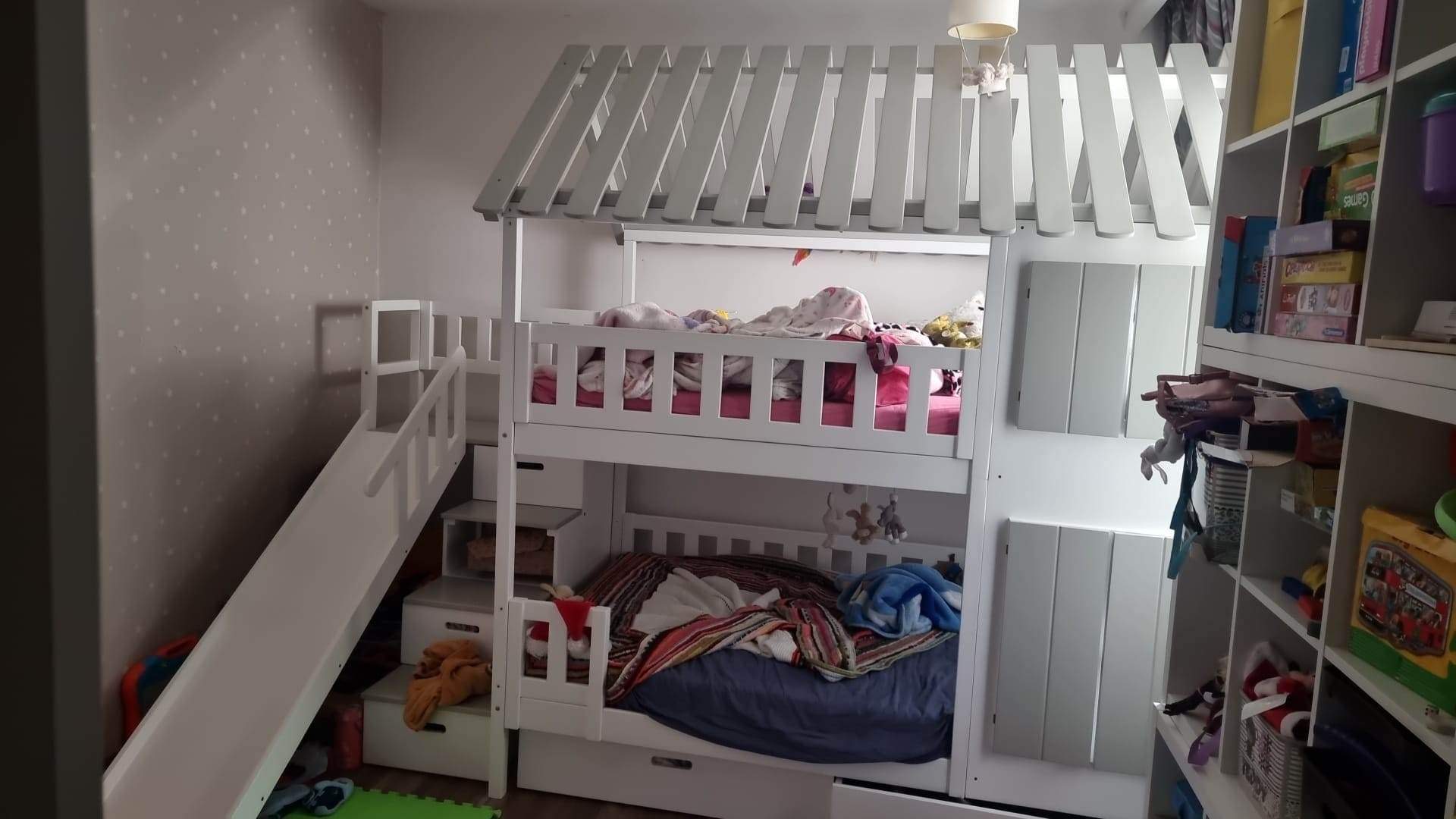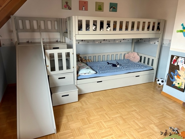 Stockbett mit Rutsche, Treppe und Dach