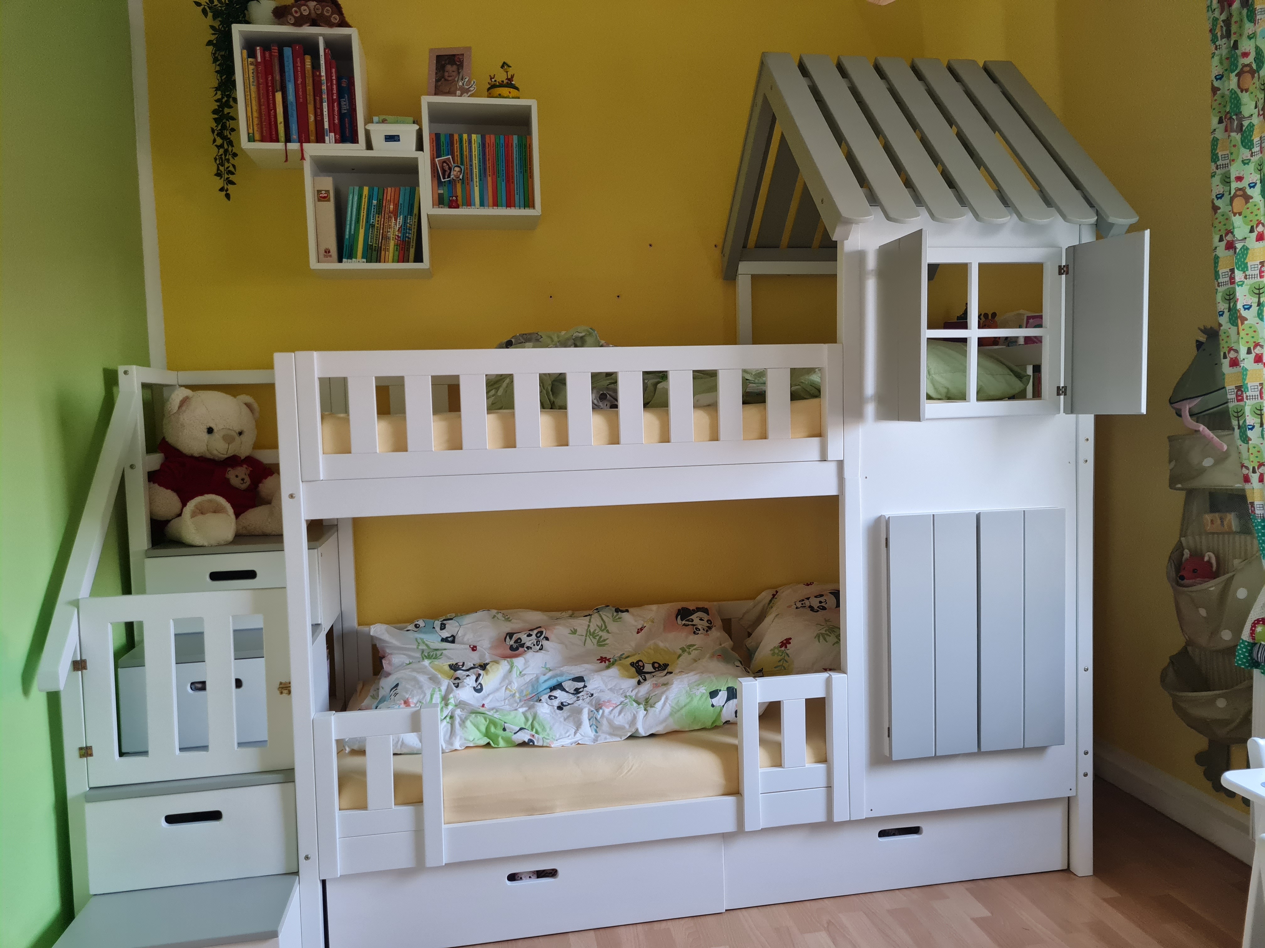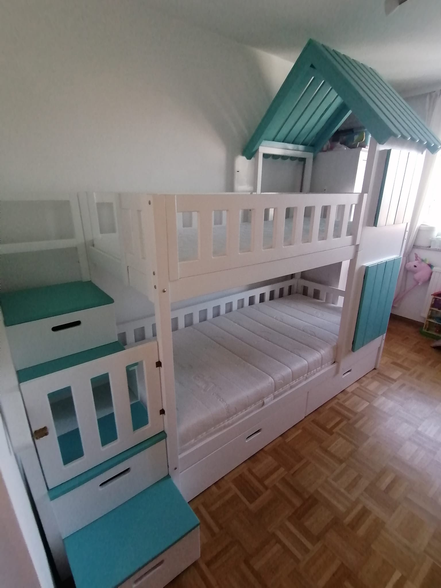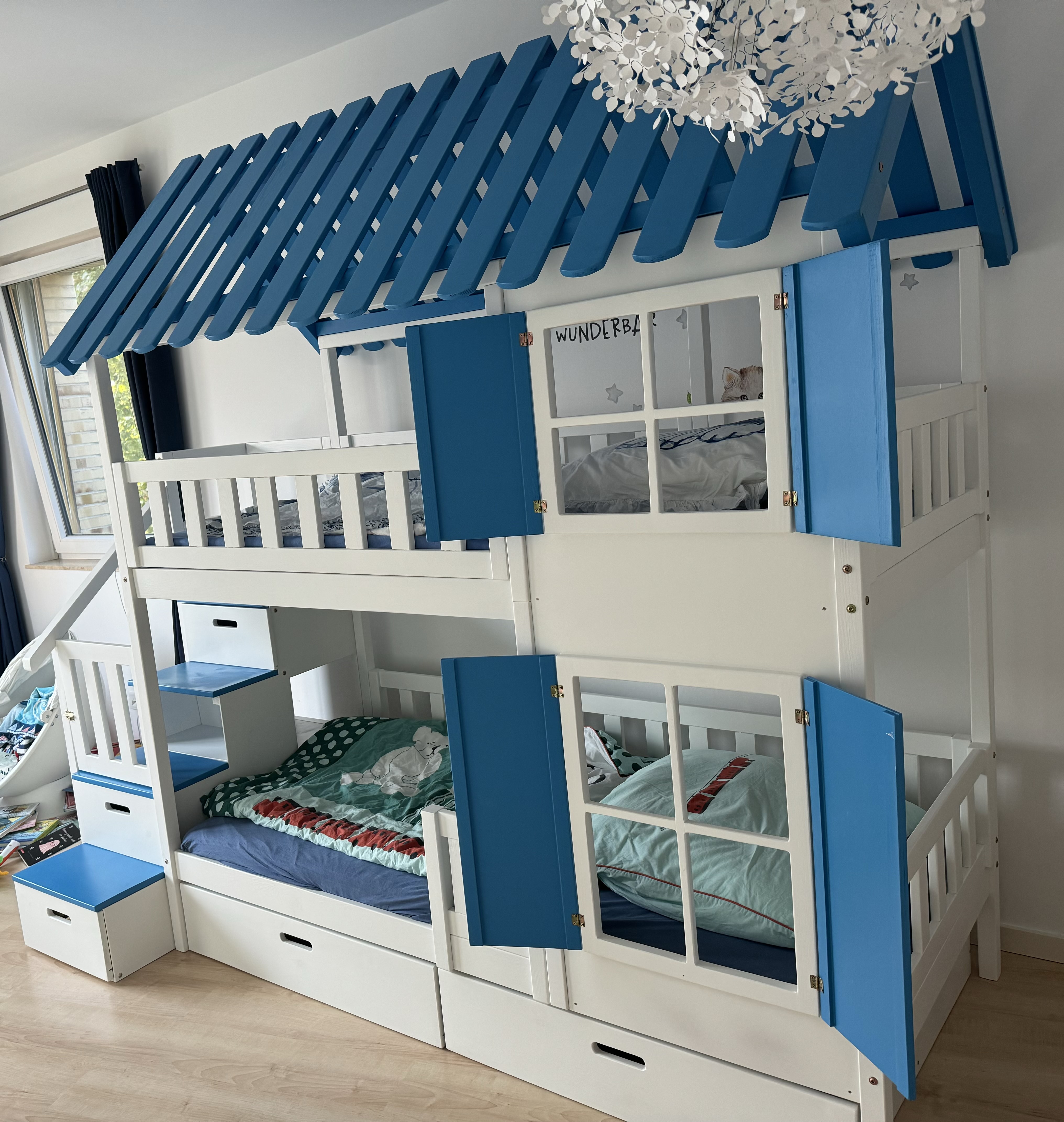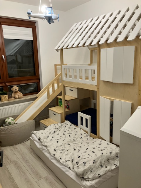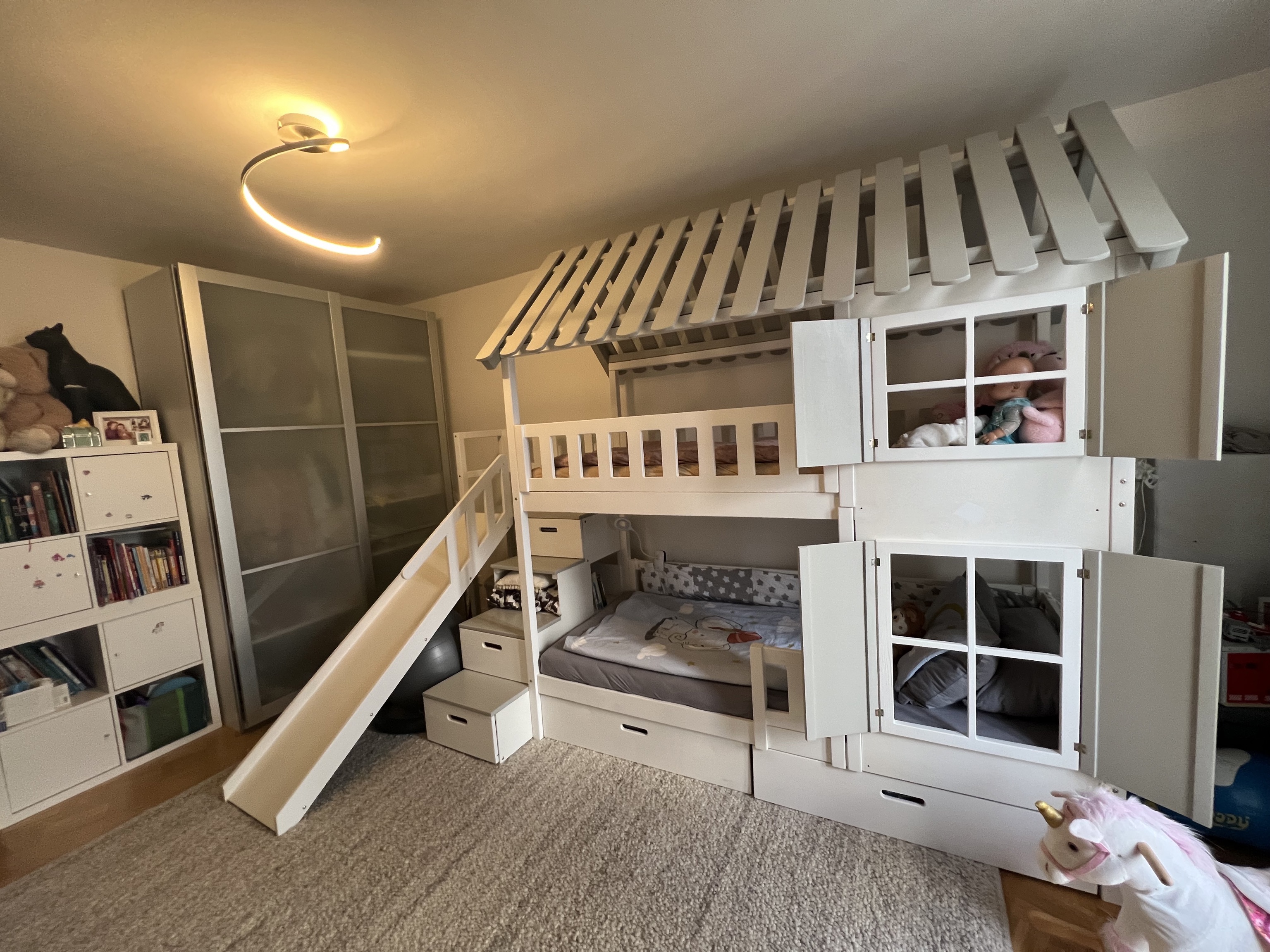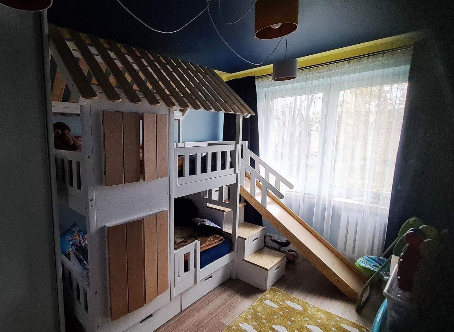 Stockbett mit Rutsche, Treppe und Dach