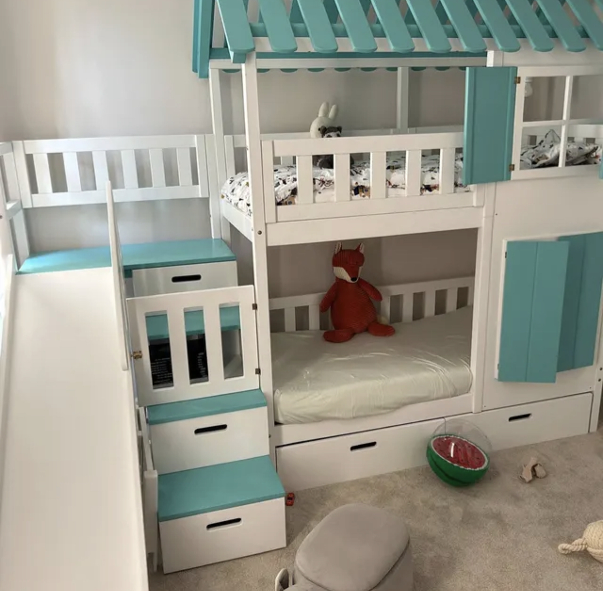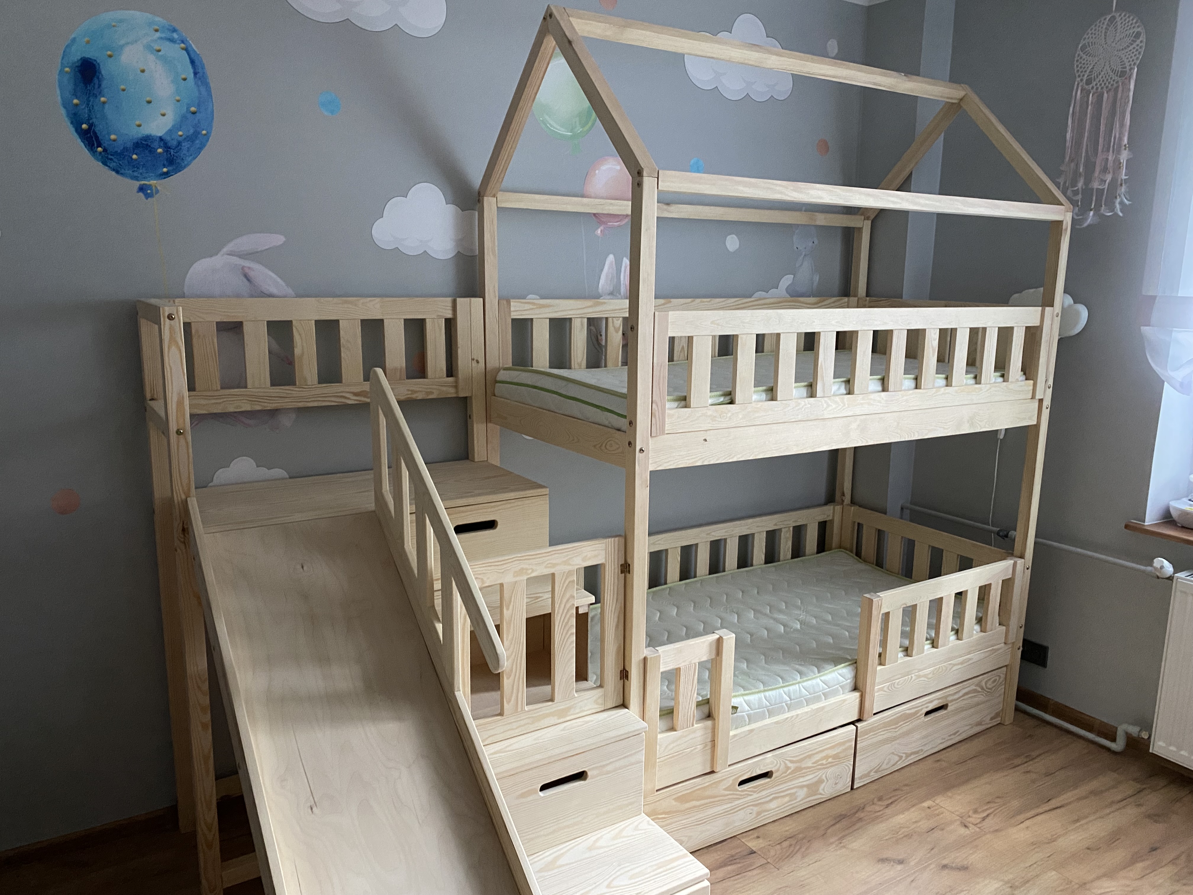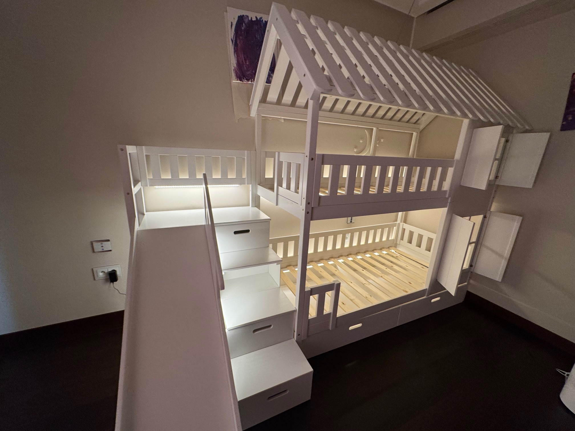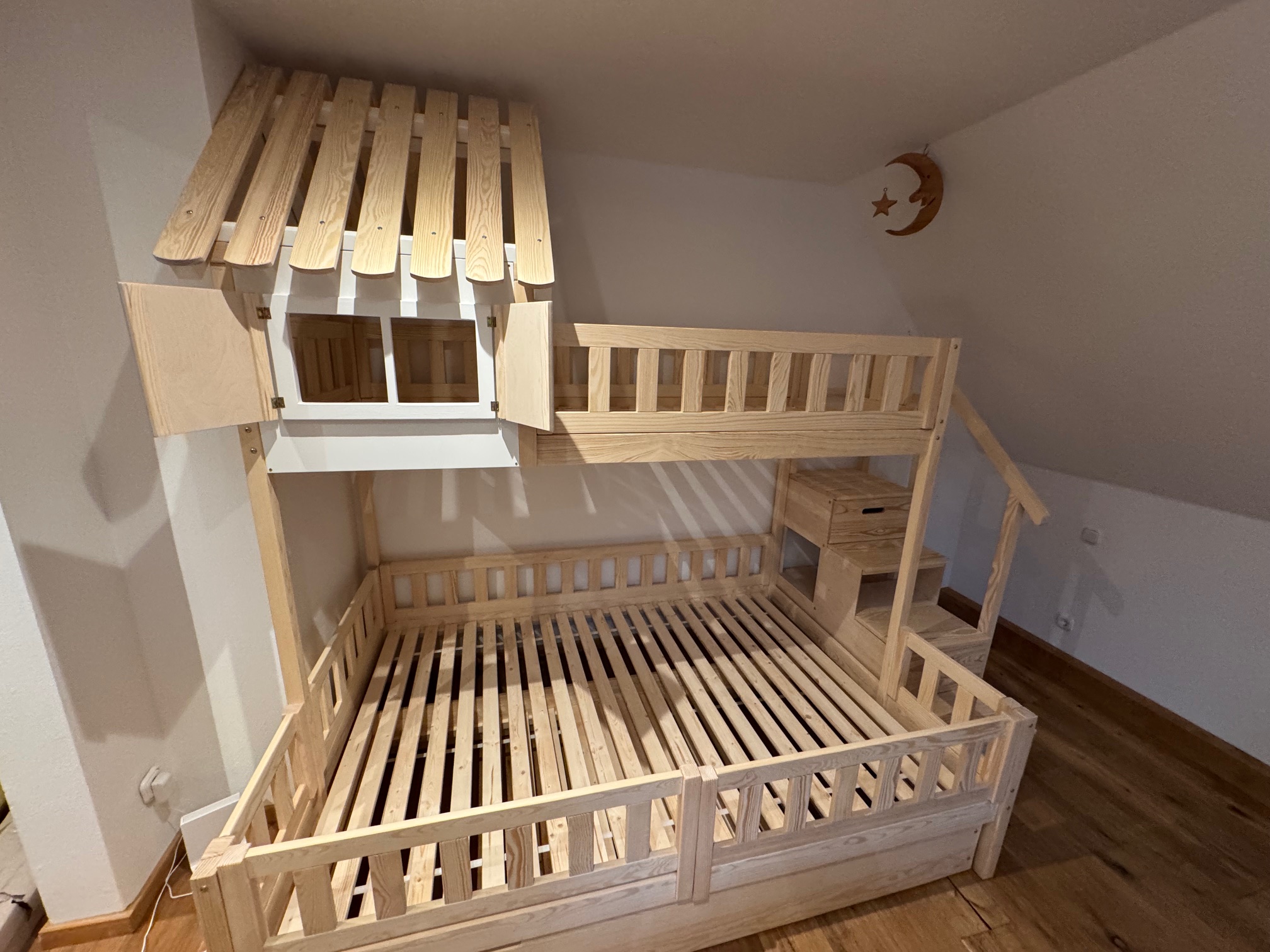 Stockbett mit Rutsche, Treppe und Dach