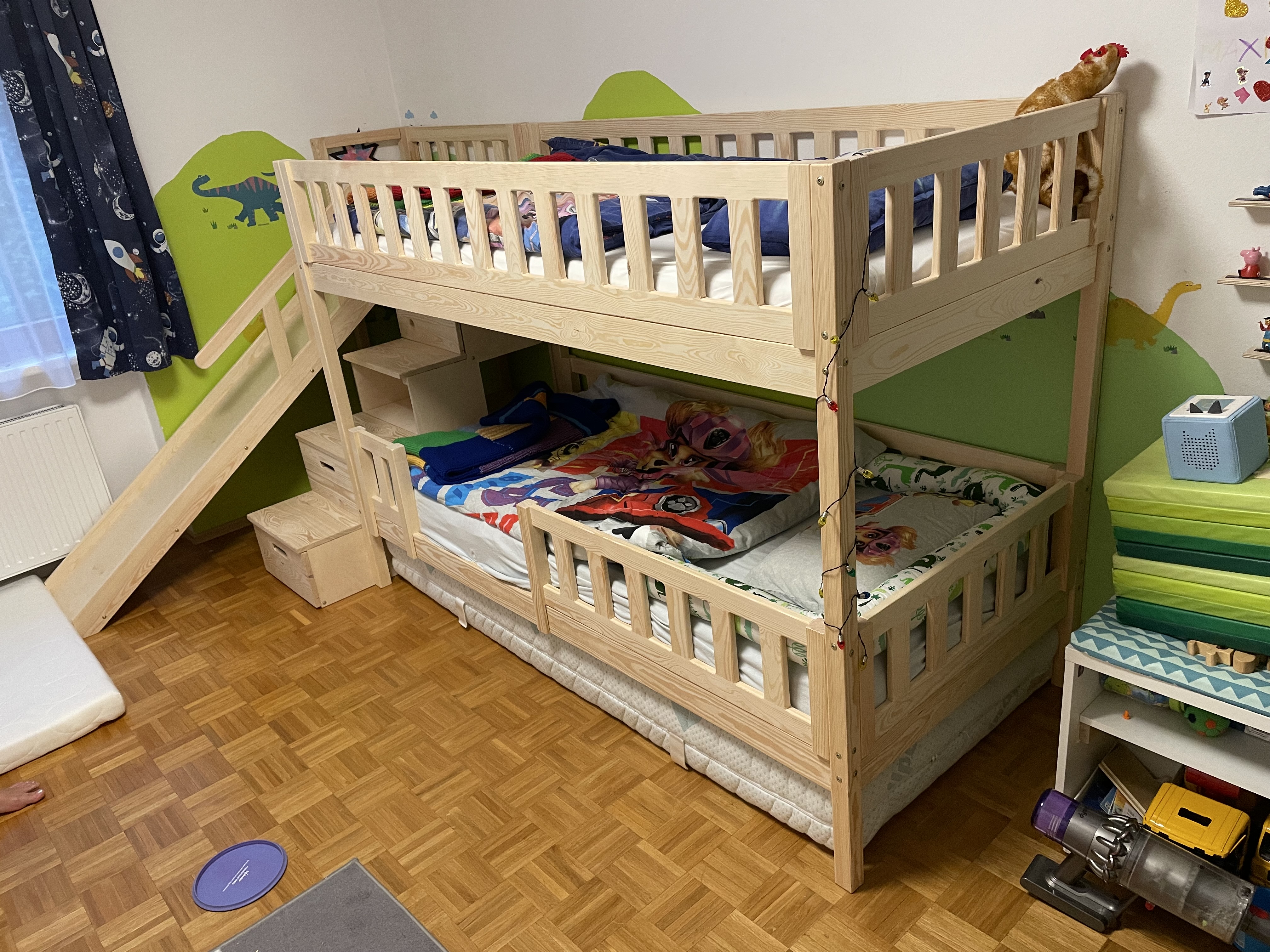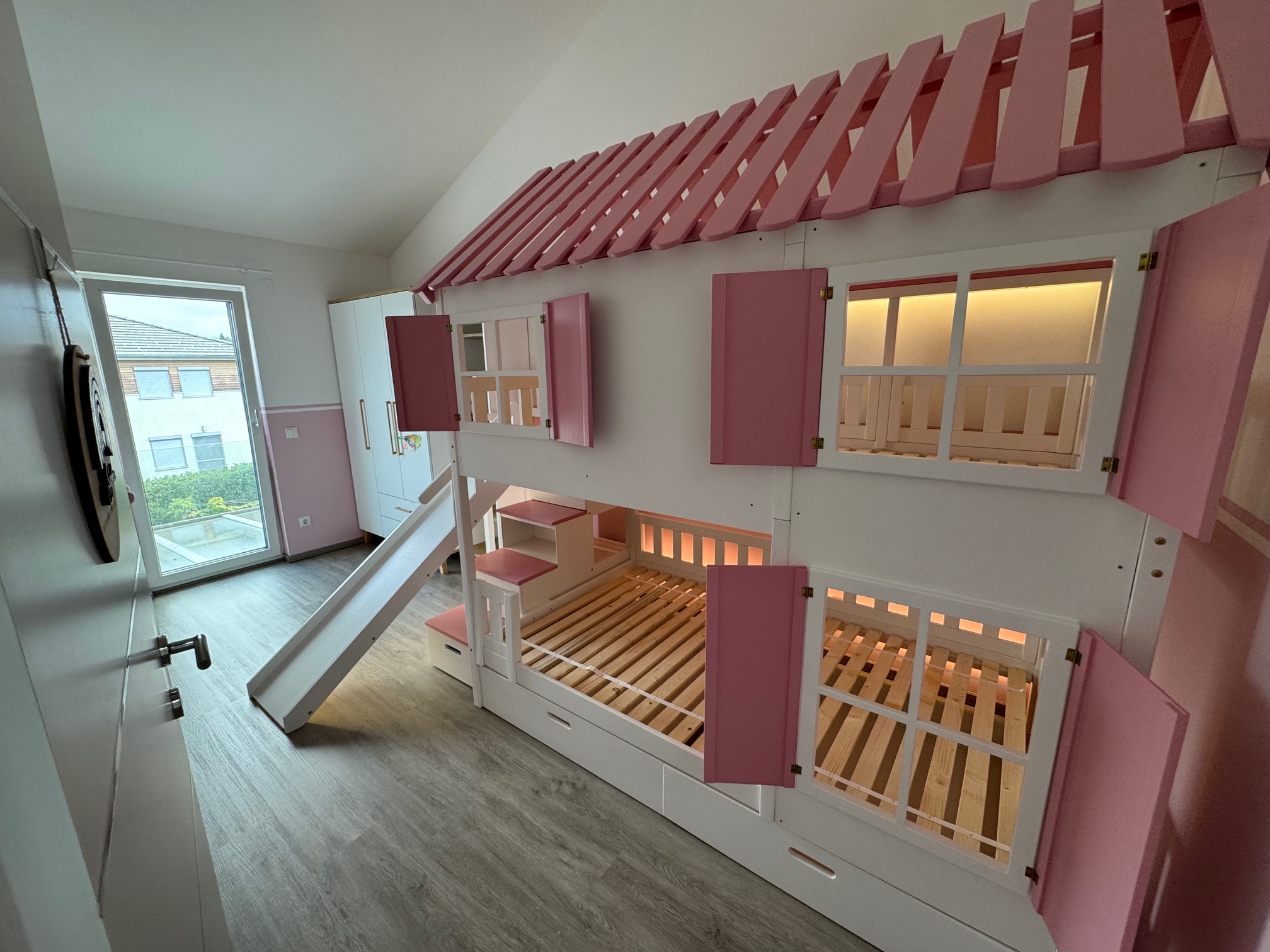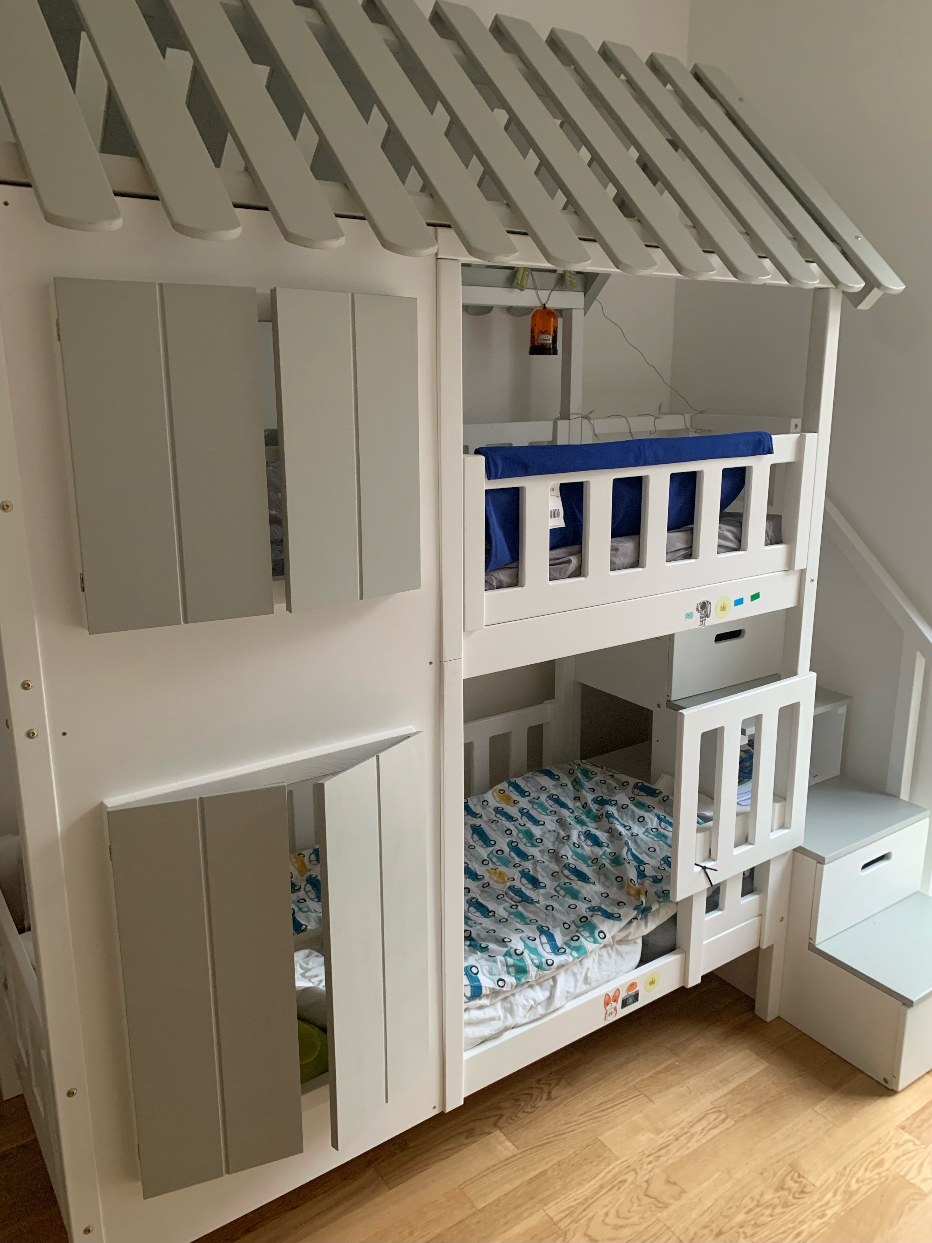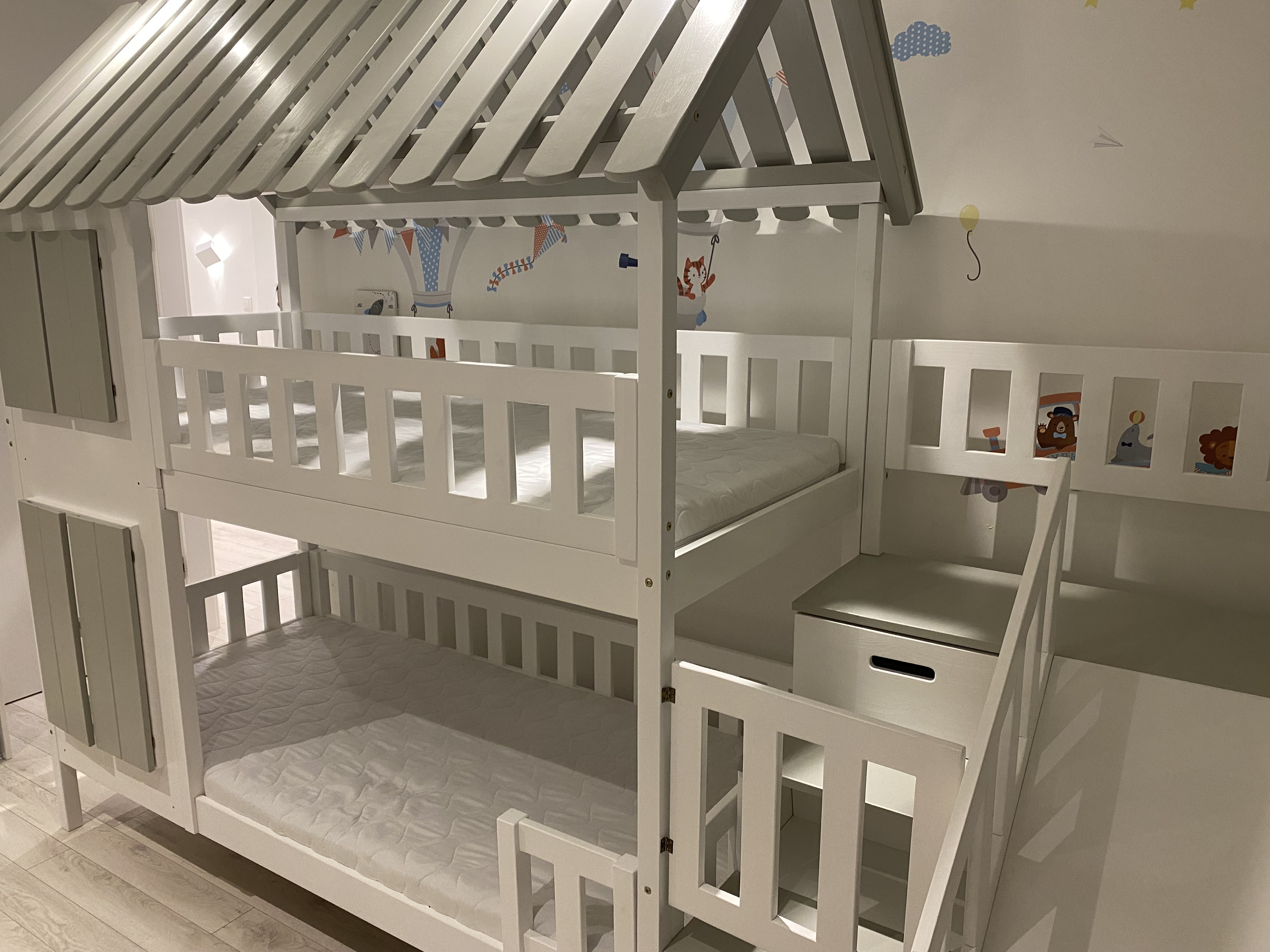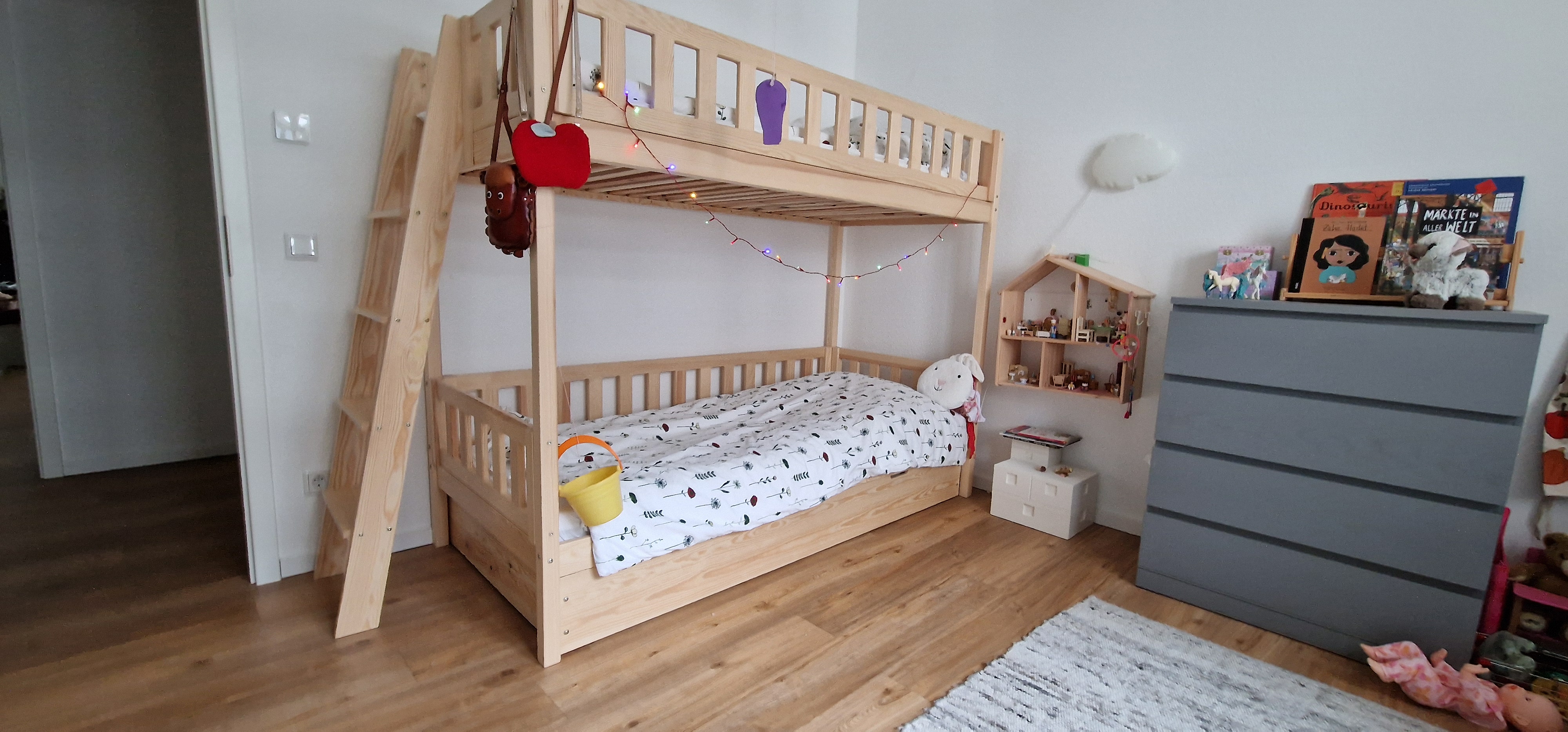 Stockbett mit Rutsche, Treppe und Dach