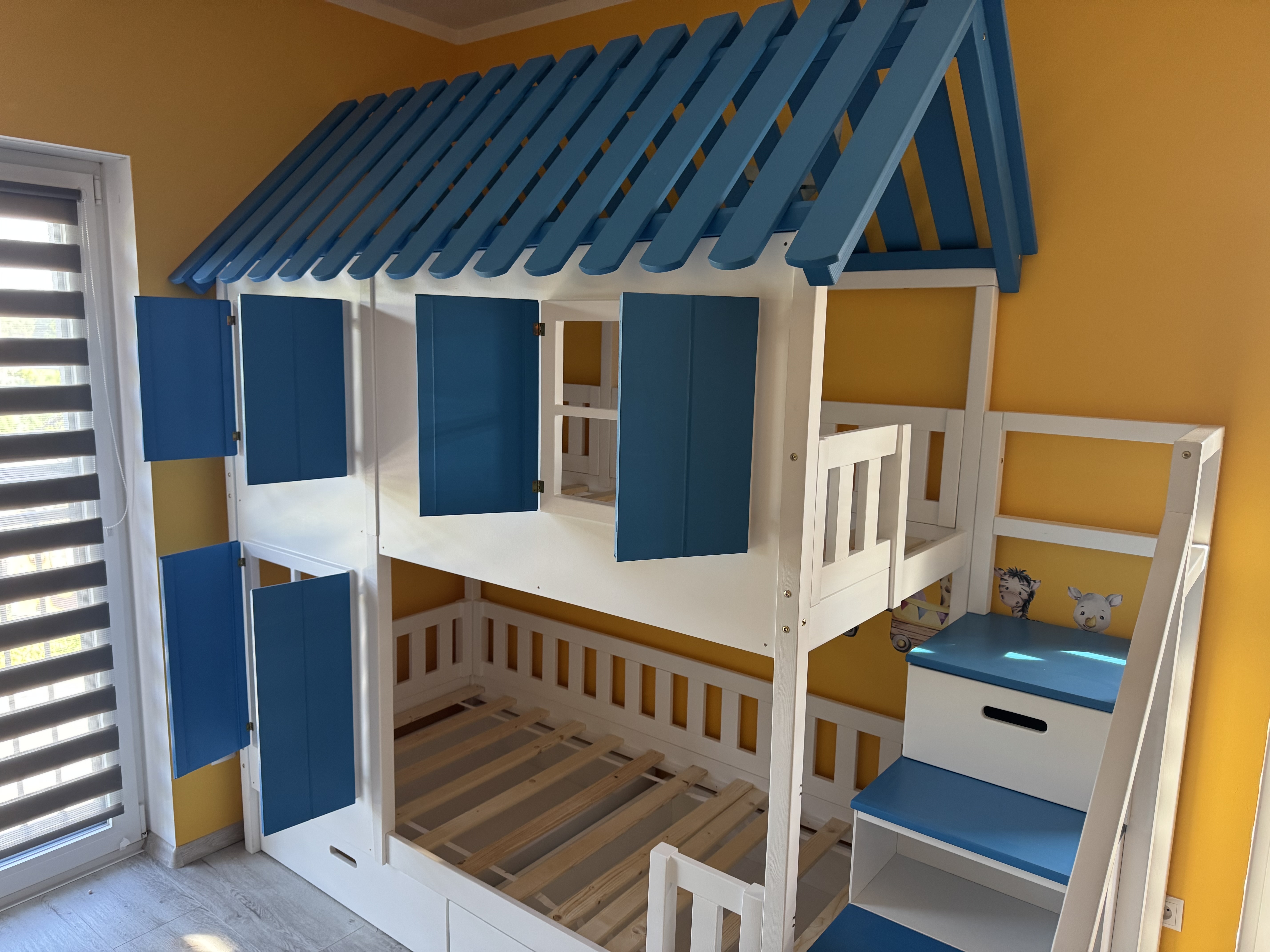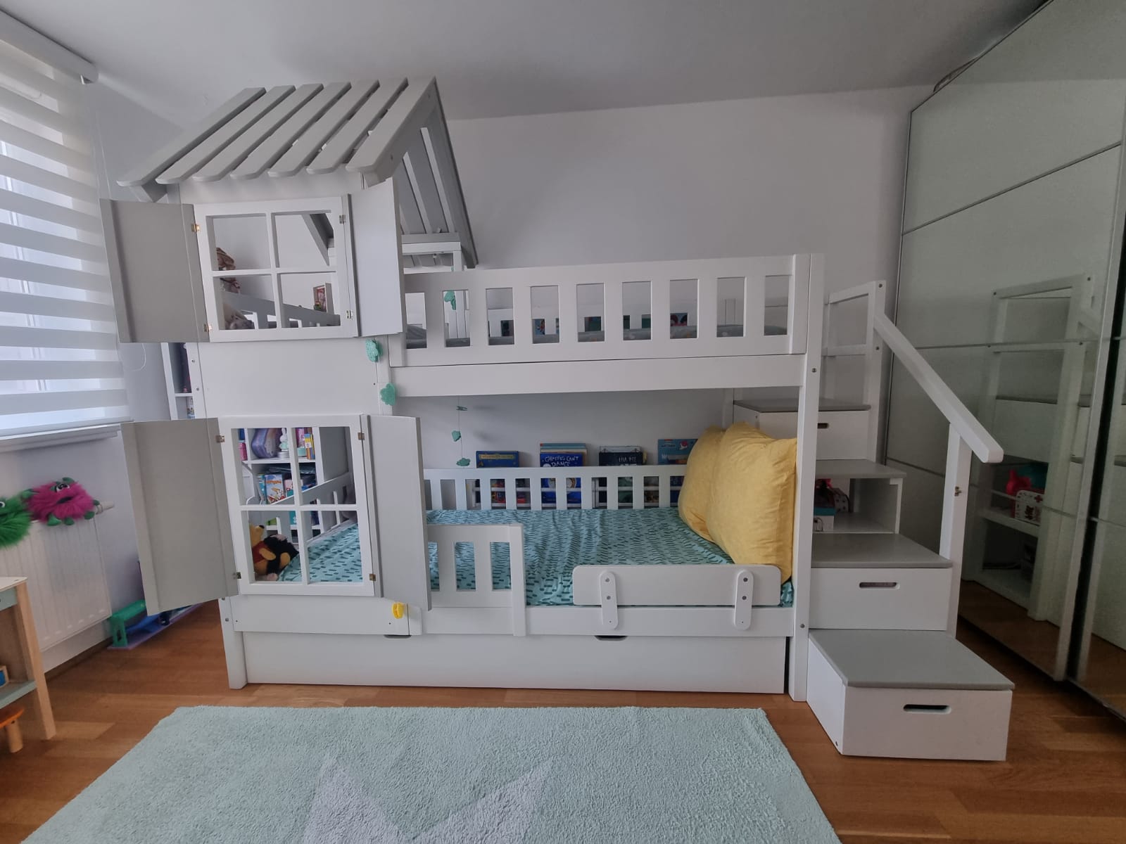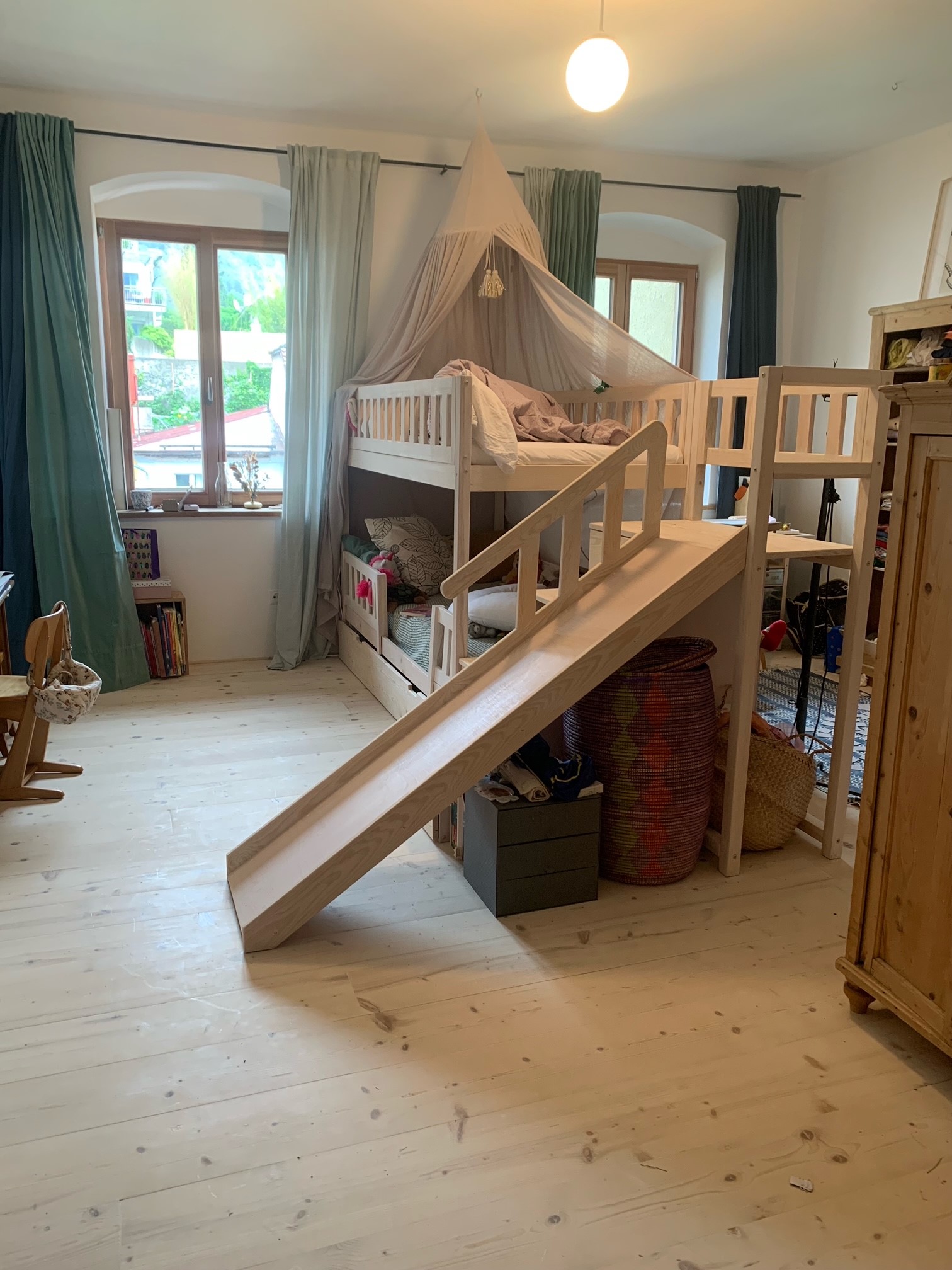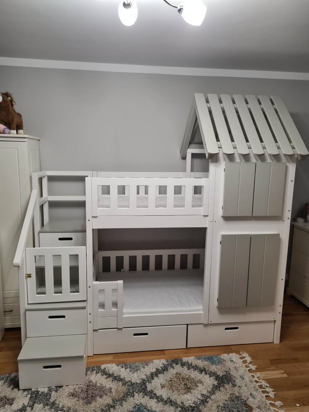 Stockbett mit Rutsche, Treppe und Dach