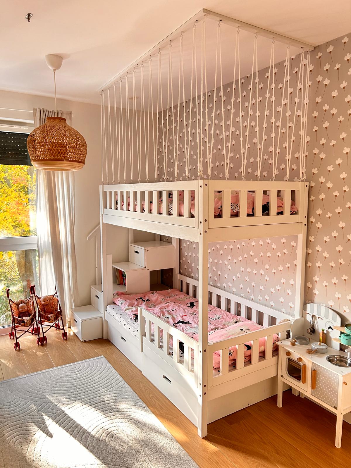 roze stapelbed voor kinderen in moderne kinderkamer