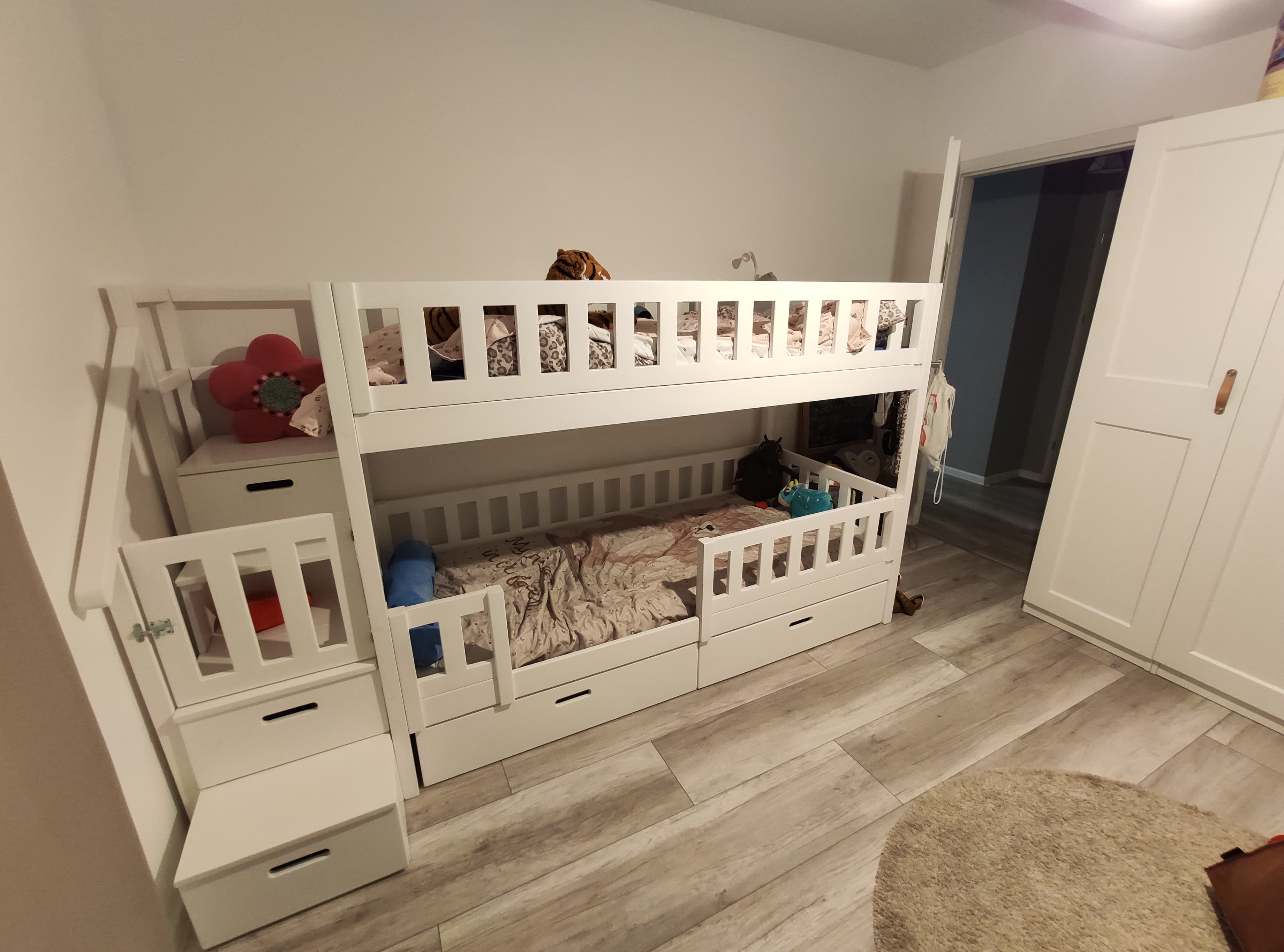 veilig kinder stapelbed met trap en gesloten bovenbed