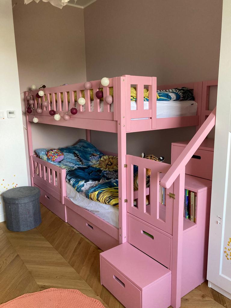 Dit kinder stapelbed in roze kleur past perfect bij: